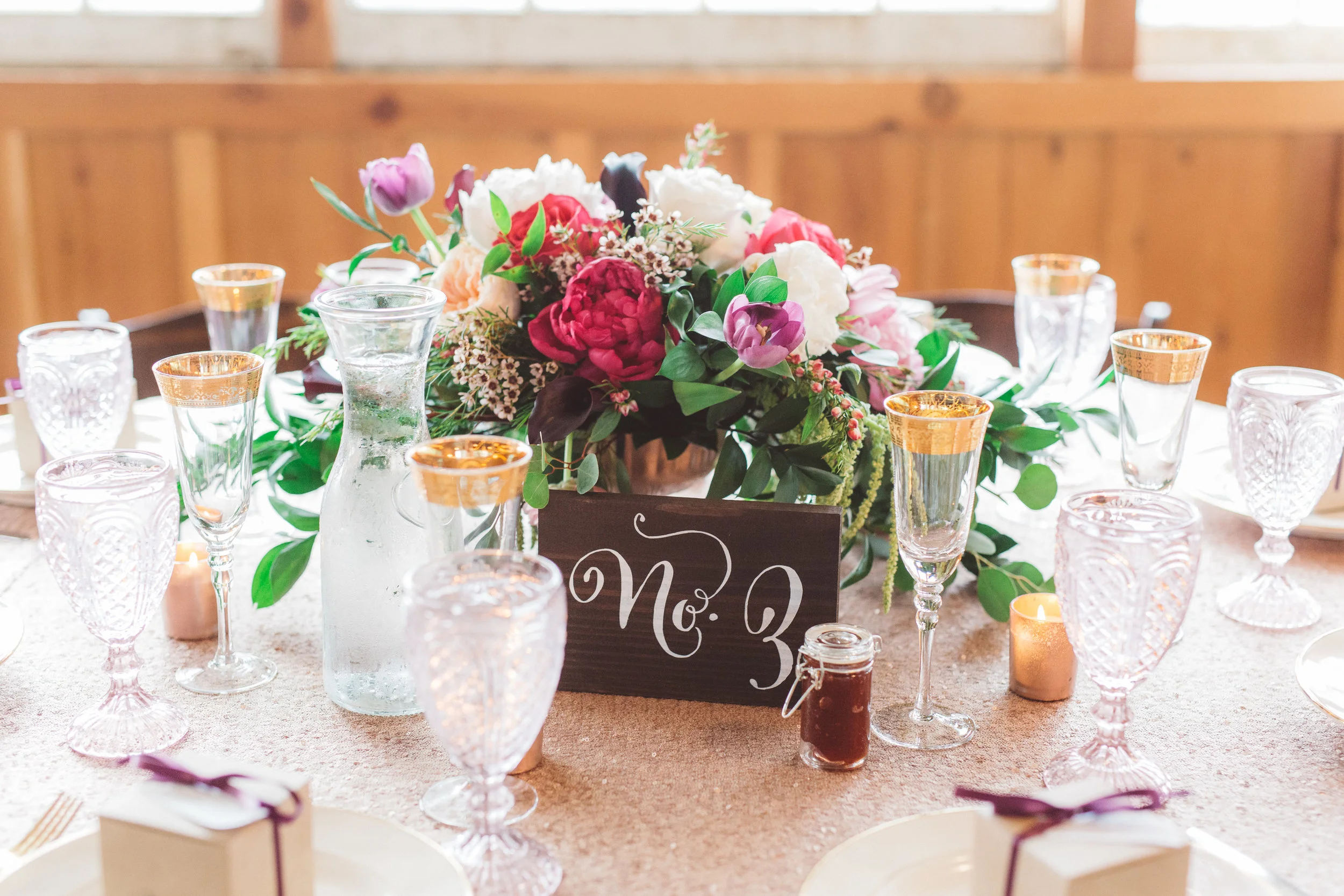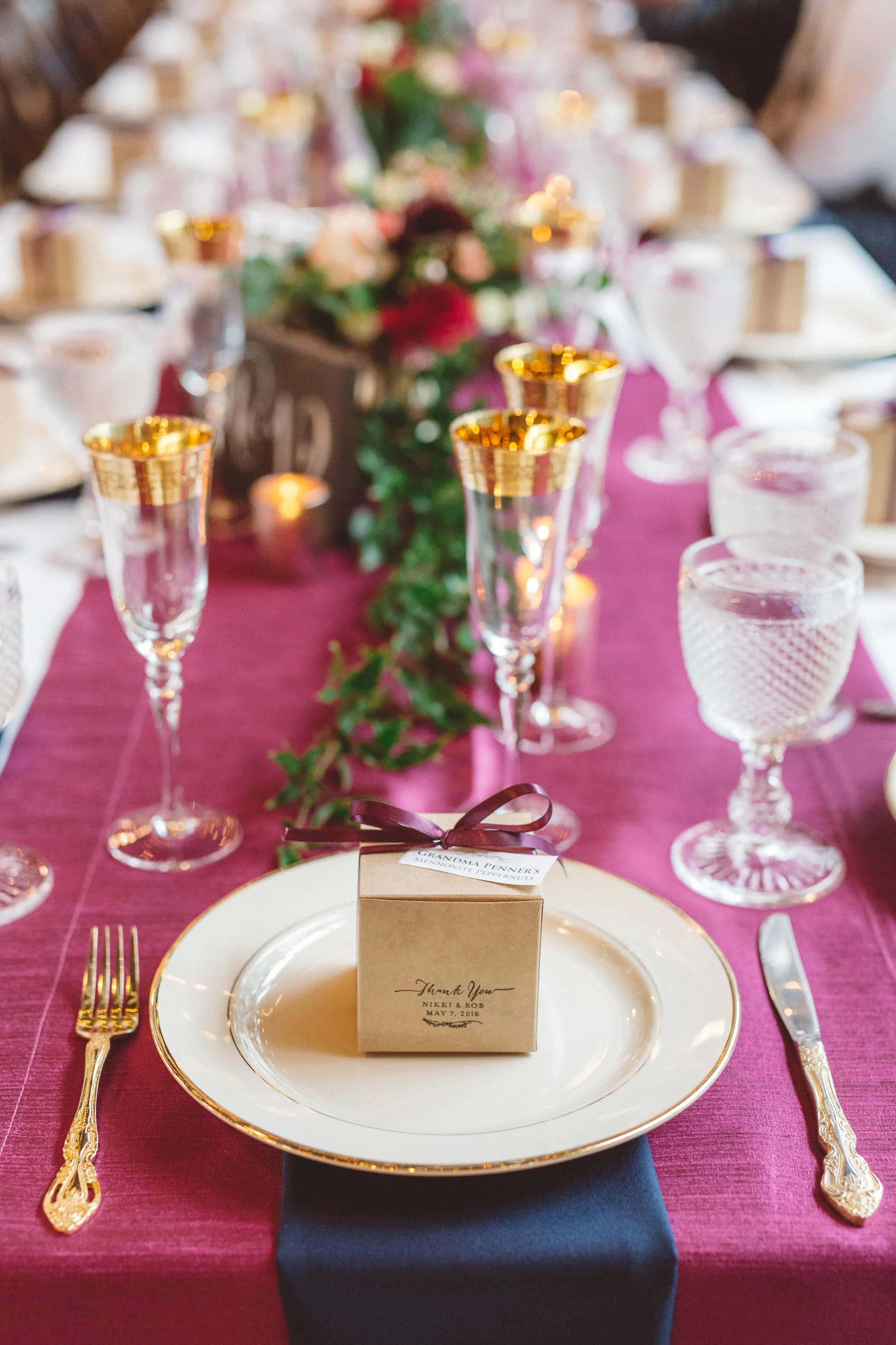 Y'all know I love to mix my table shapes and textiles and this wedding was no exception! We had long tables in crisp white linen and a yummy berry runner, while round tables in champagne gold sequin linens added some glam to the space. Insert sweet homemade favors, mixed vintage and gold glassware and it's kind of like all my favorite things.